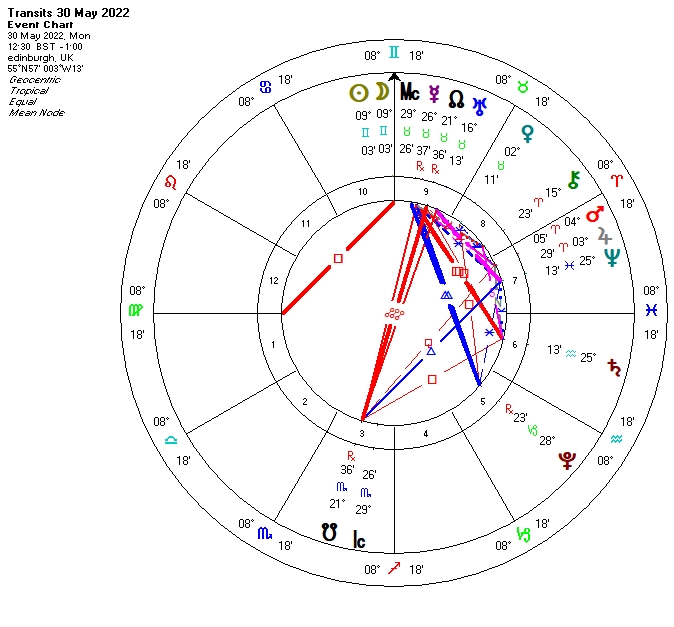 Yet again, as the New Moon will occur at 9°03′ Gemini (Moon and Sun both in Gemini) we need to know in which house this event will be happening for each of us and if the luminaries (Sun and Moon) will get into contact with any of other planets in our natal charts and so on…